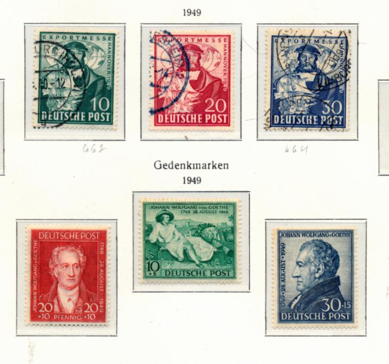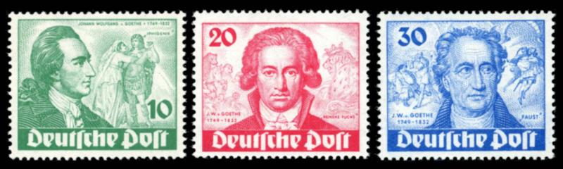 GERMANY BERLIN 1949 #9N61-63 STAMPS XF **. Bicentenary of the birth of Johann Wolfgang von Goethe issue, superb set of 3 stamps mint never hinged and signed Schlegel on back. Scott $340.00 CAD. (Image1)