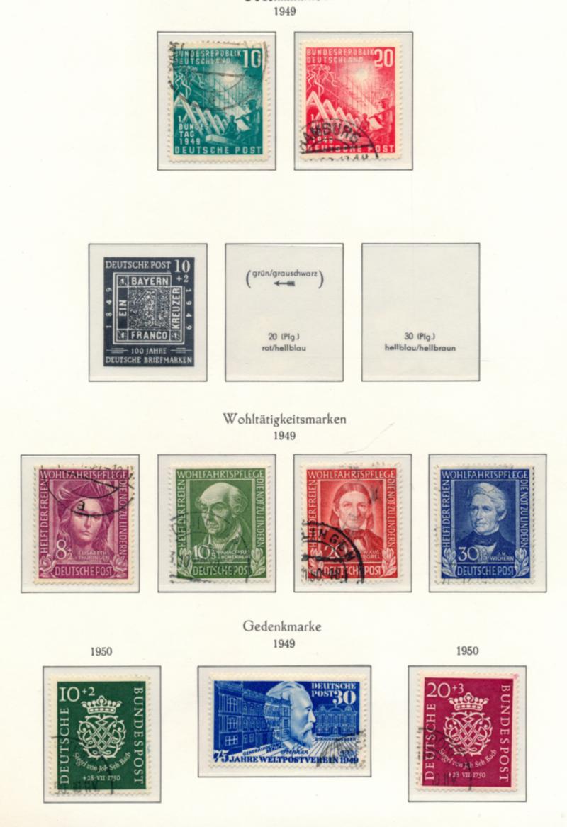 GERMANY 1949-92 COLLECTION STAMPS VF /O. Two Ka-Be hingeless albums containing a very beautiful used collection with nice cds cancellations, virtually complete (missing 5 stamps). I noted numbers 665-66, 669, 686, 688, 693, 695, 698-701, 737Ab strip of 5 from booklet, 804, B310-13, B314-15, B316-17, B320-23, B324, B325-26, B327-30, B331, B334-37, B338-41, B342-43. The President Heuss sets of 1954 and 12956 and the booklet strip with Wmk sideways are not cataloged in Scott but in Michel cat. is 630 €. Scott (from owners) $3700.00 CAD. (Image1)