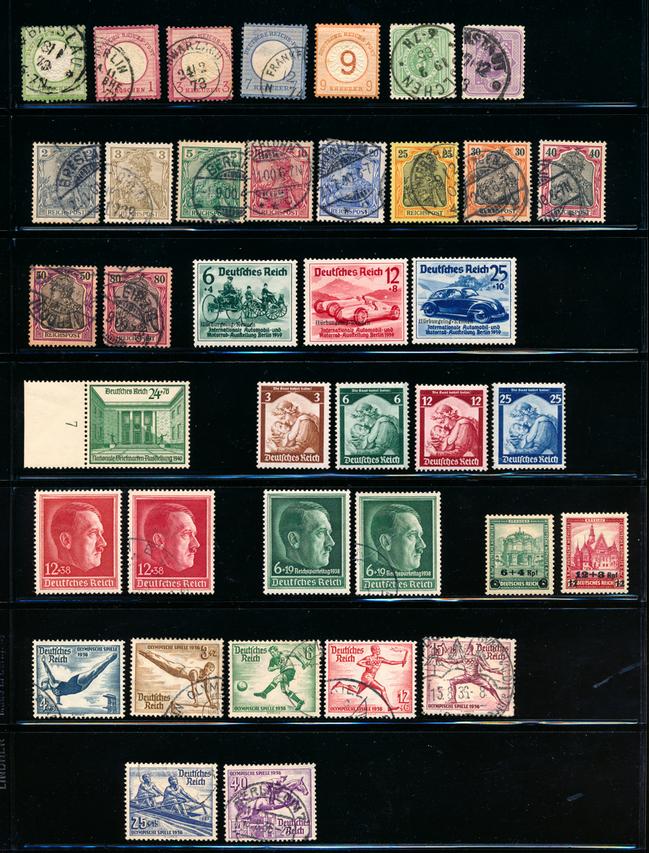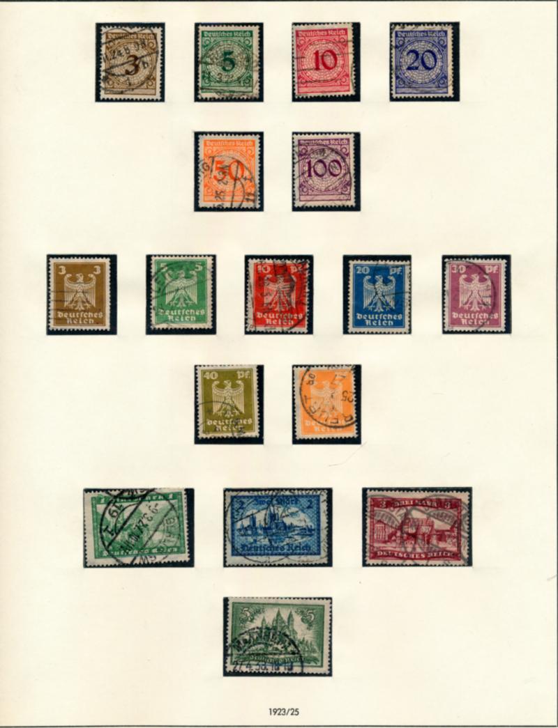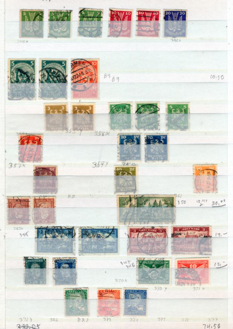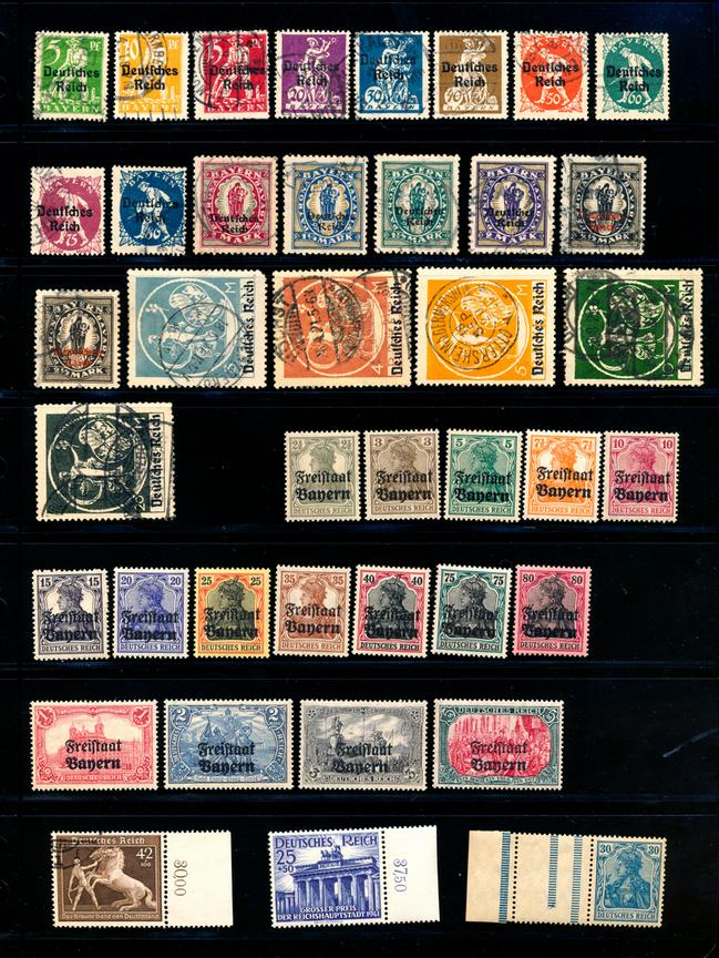 GERMANY 1903-44 SELECTION STAMPS F-VF */*-*/O. Selection of 154 mint and used stamps. I noted numbers: 459-62*, B67-78/o, B123-31**, B145**, B145/o, B169**, B218-29**, B257-69**, C27-34/o, C37/o, C46-56/o, O62-79/o, OL16-21*, Bavaria 256-75/o. Scott $1420.00 CAD. (Image1)