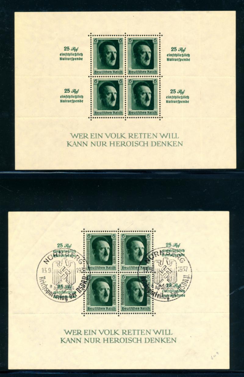GERMANY LOT STAMPS S/S F-VF */**/O. Binder containing a nice lot of German stamps and souvenir sheets mint and used. I noted numbers B8-11*, B19-22*, B44-48*, B55/o, B55a/o, B59-67/o, B60-67*, B90* x5, B90** x2, B91-92*, B104**, B105* x2, B106/o, B144* x5, B145* x2, B191**, B257-69** block of 4 x2. Very high catalog value. Starting bid $240.00. (Image1)
