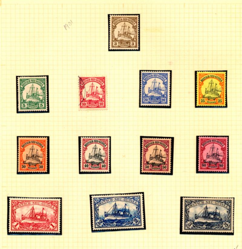GERMANY + DANZIG LOT STAMPS F-VF */**/O. 2 Stockbooks and 1 album containing few thousand stamps mint and used. Many stamps mint never hinged. Need to be checked, album with Danzig and German Offices (noted German New Guinea #7-18*) has a catalog value of $675CAD. Starting bid $75.00. (Image1)