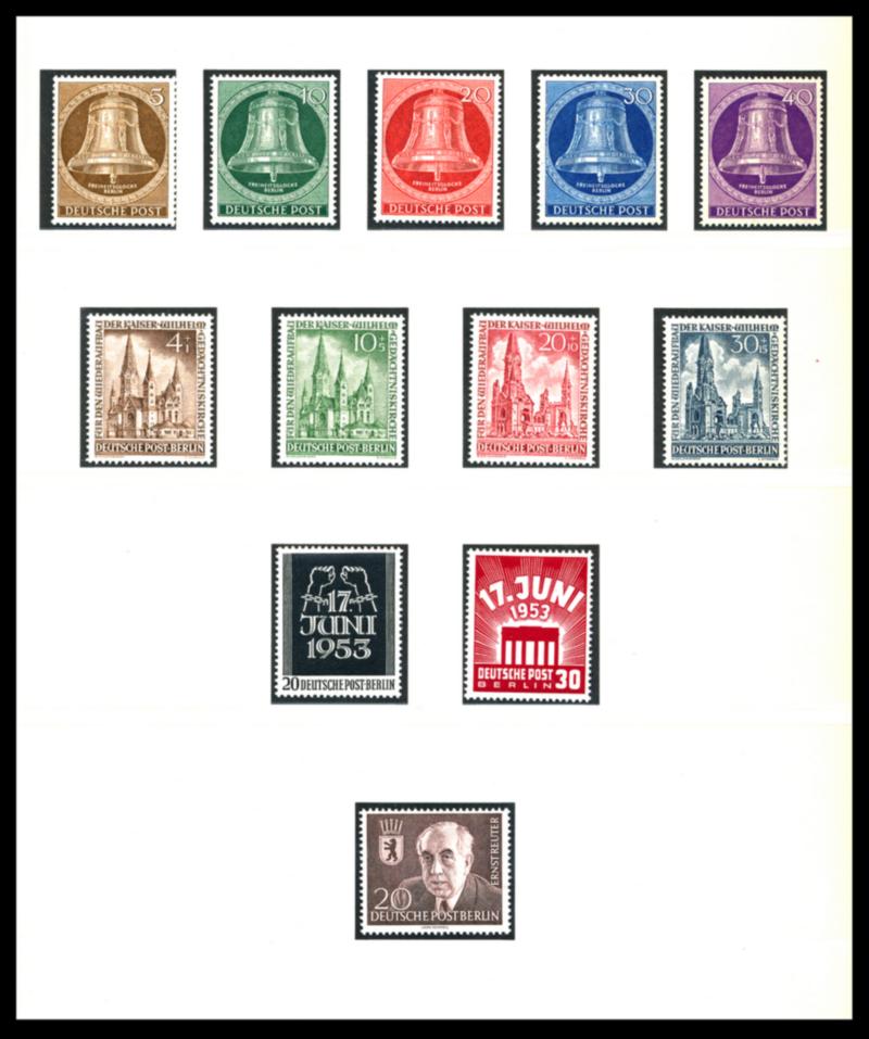 GERMANY BERLIN COLLECTION 1948-1975 STAMPS VF **. Lindner hingeless album containing a mint never hinged collection of 429 stamps. I noted #9N94-98, 9N99-100, 9N101-02, 9N115, 9NB8-11. Scott $619.00 CAD. (Image1)