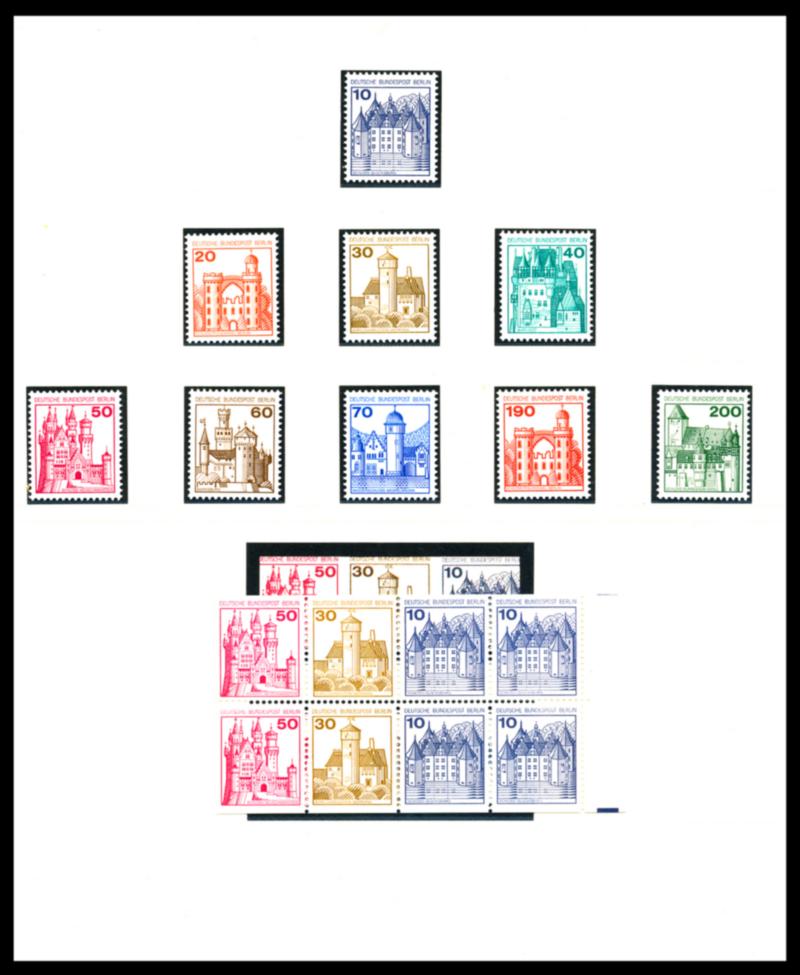 GERMANY BERLIN COLLECTION 1976-1990 STAMPS VF **. Lindner hingeless album containing a nice collection almost complete for the period of 384 stamps and 4 souvenir sheets mint never hinged. Starting bid $140.00. (Image1)