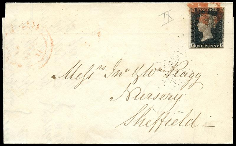 1: PLATE 9 (EE), just into LR to part of next stamp at left, tied to folded pre-printed order form, red Birmingham 14 JA 1841 H, to Nursery Sheffield. (SG - £550+) (Image)