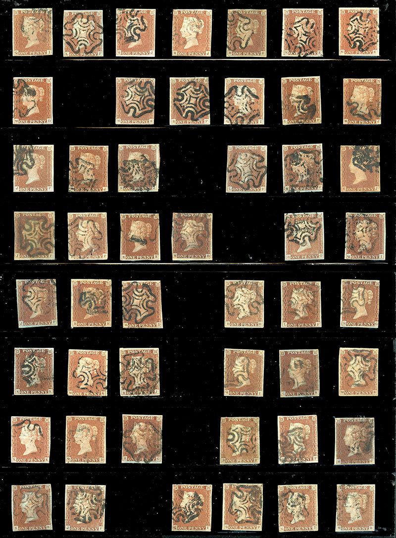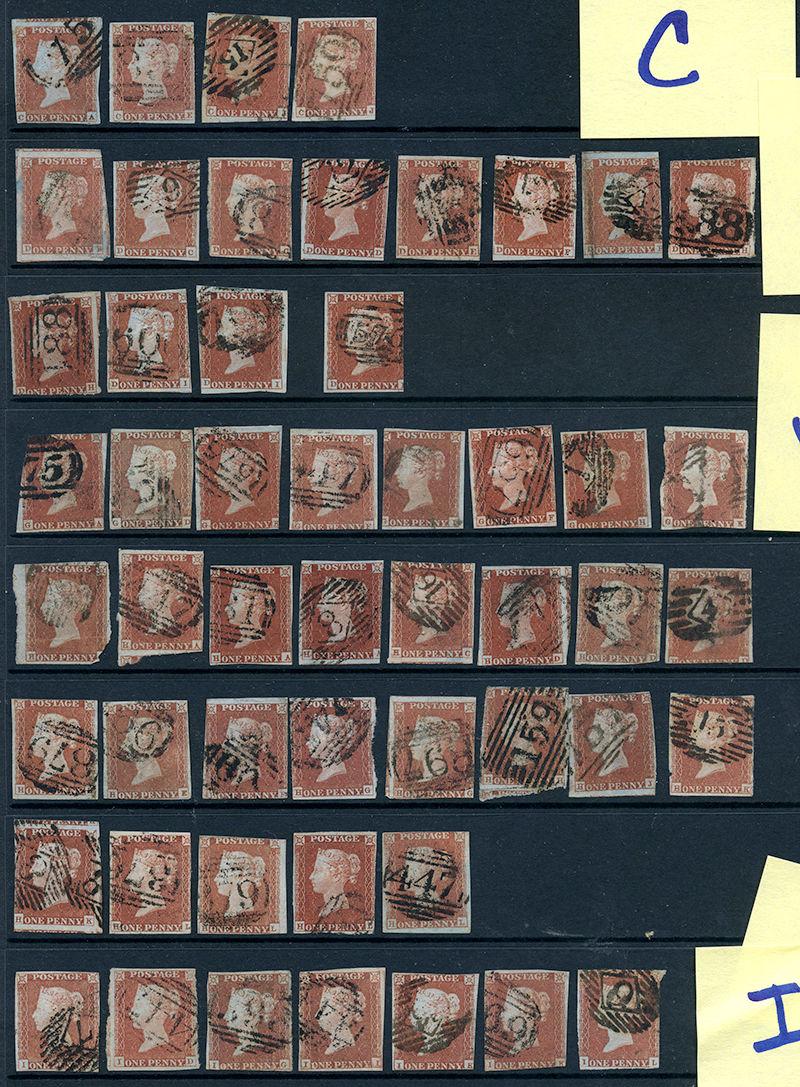 3: ONE PENNY: RED BROWN on BLUISH PAPER IMPERFORATES, 184 with MALTESE CROSS cancels and PLATED by owner incl #s 12 (8), 13 (8), 14 (7), 15 (5), 16 (6), 17 (6), 18 (5), 19 (6), 20 (4), 21 (4), 22 (6), 23 (5), 24 (6), 25 (5), 26 (8), 27 (6), 28 (9), 29 (7), 30 (7), 31 (5), 32 (5), 33 (8), 34 (10), 35 (8), 36 (9), 37 (6), 38 (4), 39 (5), 40 (5) and 41, mostly different positions, wide range of shades and varieties, quality varies including some more or less faulty, most appear fine. Inspect. (SG £6640+) (Image)