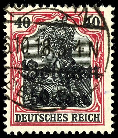 50 cent on 40 pfennigs Germania, overprint close between distance, used, very fine, expertized Hey BPP, Michel 400.- (20bI)