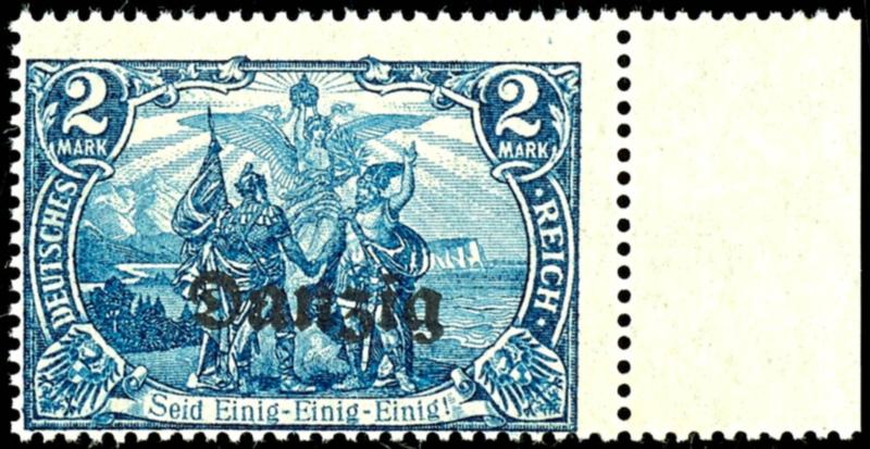 2 Mark Deutsches Reich mit Bdr.-Aufdruck "Danzig", schwärzlichblau, tadellos postfrisch, gepr. Kniep BPP und Fotoattest Tworek BPP (2023) "echt und einwandfrei", Mi. 1.000.- (Image 1)(Image)