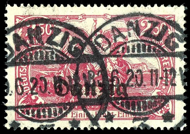 2,50 Mark rosakarmin, ideal klar und zentrisch zeitgerecht gestempelt "DANZIG 20.6.20", gepr. Kniep BPP und Infla echt, Mi. 900.- (Image 1)(Image)