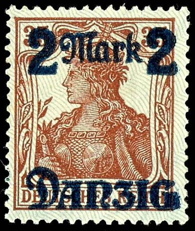 15 pfennigs Germania with black typography overprint "Gdansk", black brown violet, mint never hinged, very fine, expertized Soecknick BPP, Michel 320.- (22b)