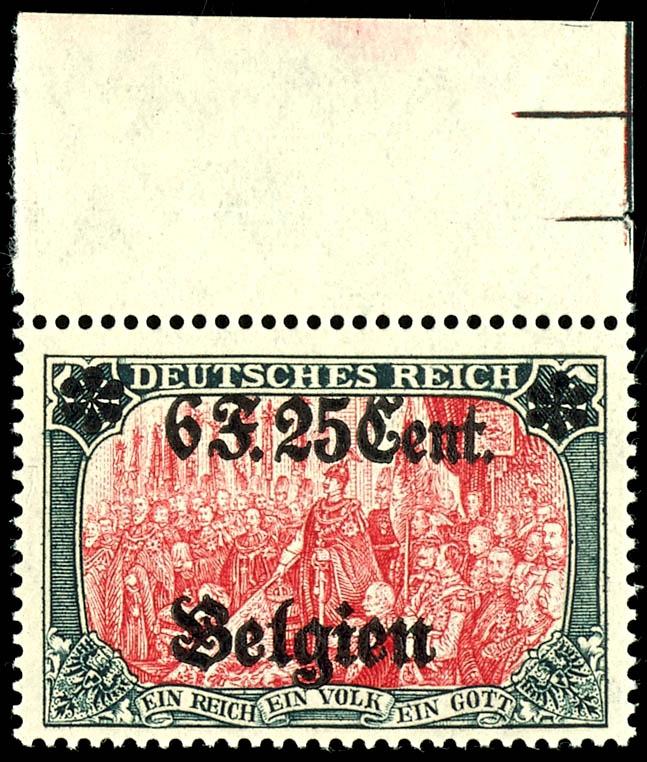 1 F. 25 cent on 1 Mark, stamp from right margin of sheet mint never hinged, very fine, Michel 150.- (11IB) 1 F.25 Cent auf 1 Mark, Marke vom rechten Bogenrand postfrisch, tadellose Erhaltung, Mi. 150.- (Image)