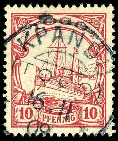 KPANDU 16.11 08, single circle postmark clear on 10 pfennigs imperial yacht, better cancellation. (9) KPANDU 16.11 08, K1 klar auf 10 Pfennig Kaiseryacht, bessere Entwertung. (Image)