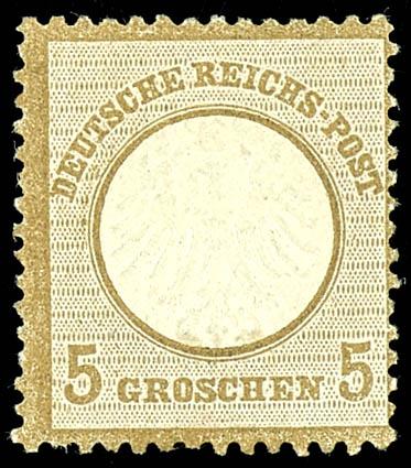 5 Groschen small breast shield, ochre-brown, fresh colours and perfect perforations extremely fine copy, unused with original gum with slight hinge and affixed spot, expertized Rohr and photo expertize Martin Wolfgang Sommer BPP (6) Certificate 5 Groschen kleiner Schild, ockerbraun, farbfrisches und vollzähniges Kabinettstück, ungebraucht mit Originalgummierung mit leichter Falz- und Haftstelle, geprüft Rohr und Fotoattest Martin-Wolfgang Sommer BPP (Image)