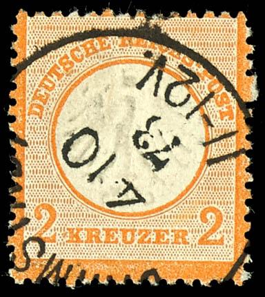 2 Kreuzer small breast shield orange, cancelled by single circle postmark \FRANKFURT a M. 5 10 74\, very fine, photo expertize Martin Wolfgang Sommer BPP \very fine (15) Certificate 2 Kreuzer kleiner Schild orange, entwertet mit Einkreisstempel \FRANKFURT a M. 5 10 74\, tadellose Erhaltung, Fotobefund Martin-Wolfgang Sommer BPP \tadellose Erhaltung\ (Image)
