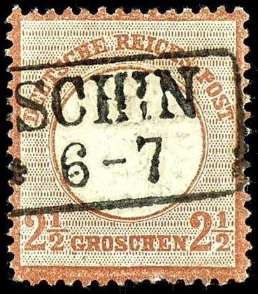 2 1 / 2 Groschen large shield, medium red brown, cancelled by box cancel of 2 lines \MOSCHIN\, very fine, unsigned, photo expertize Martin Wolfgang Sommer BPP \in especially fine, fresh state. (21b) Certificate 2 1/2 Groschen großer Schild, mittelrotbraun, entwertet mit Ra2 \MOSCHIN\, tadellose Erhaltung, unsigniert, Fotoattest Martin-Wolfgang Sommer BPP \in besonders feiner, frischer Beschaffenheit.\ (Image)