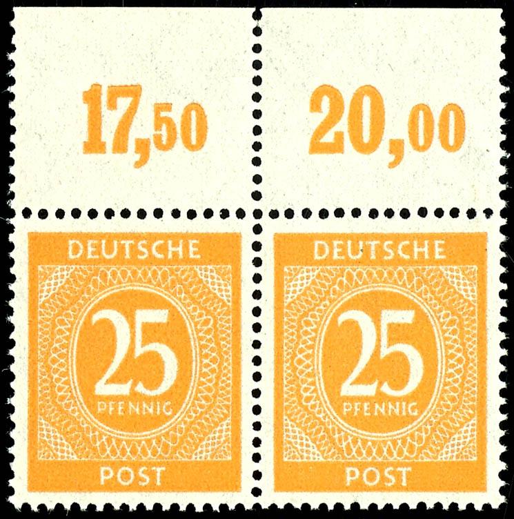 25 Pfennig Ziffern. Postfrisch im Paar vom Oberrand, durchgezähnt. Linke Marke leicht bügig. Mi.140,-