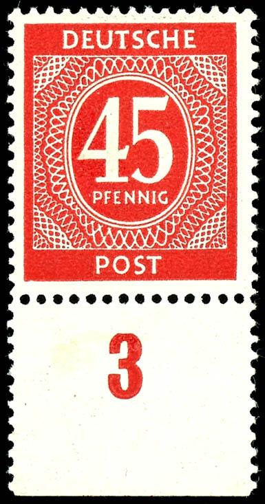45 Pfg. Numerals red, watermark increasingly, lower margin copy mint never hinged, expertized Schlegel BPP, Michel 200,- (931Y) (Image 1)(Image)
