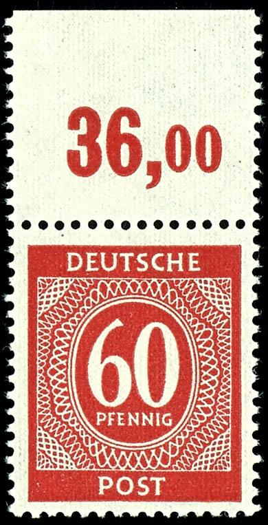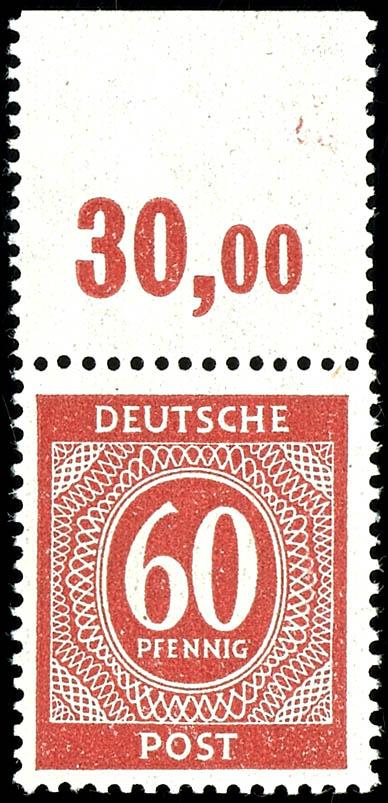 60 Pfennig Ziffern. Postfrisch vom Oberrand, durchgezähnt. Befund ARGE. Mi.300,-