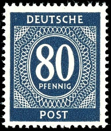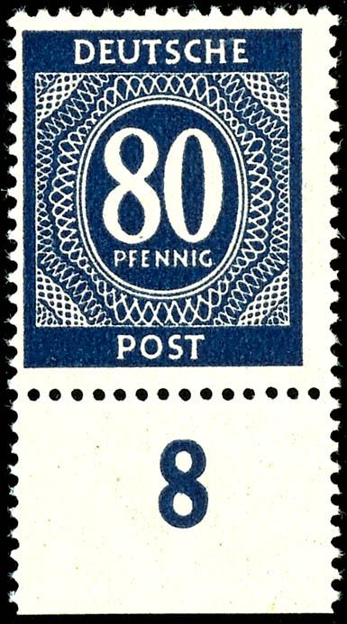 80 Pfg. Ziffern dunkelviolettultramin, postfrisch, Farbbefund Bernhöft, eine der seltensten Farbvariante dieser Ausgabe, Mi. 1.600,-