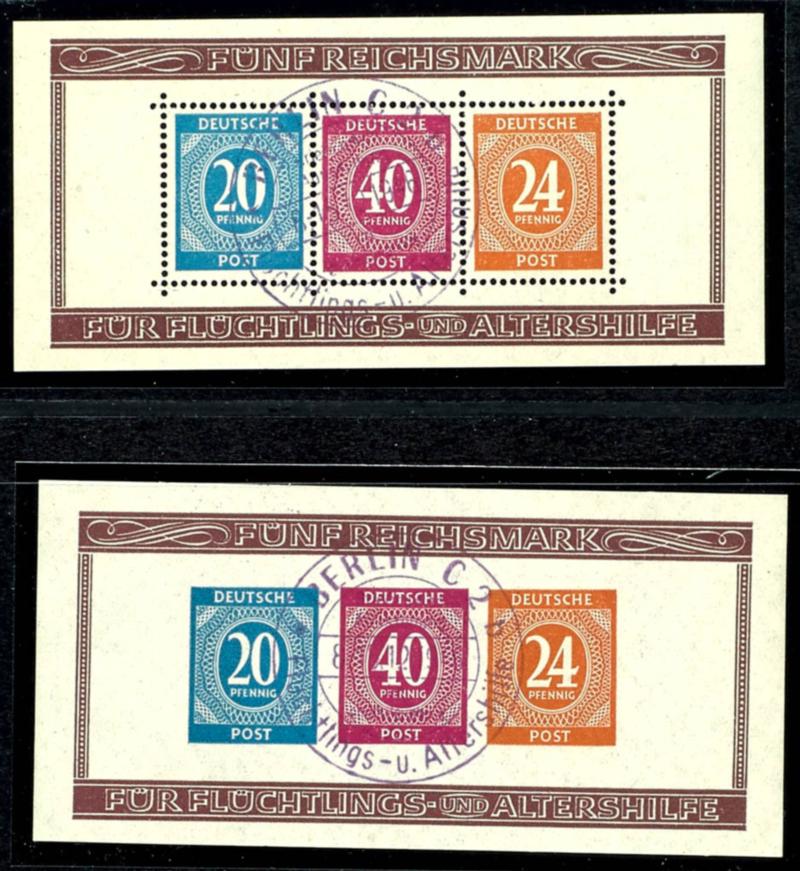 Help for the aged souvenir sheet pair perforated and cut with special cancellation, expertized Schlegel BPP, Michel 450.- (Bl.12A/B) (Image 1)(Image)