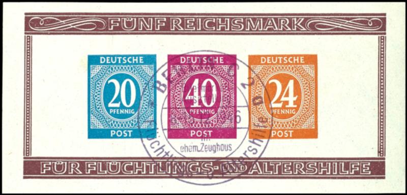 Altershilfeblock, ungezähnt, gestempelt mit violettem Sonderstempel, gepr. Schlegel D. BPP, Mi. 200.-