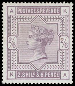 Great Britain, 1883, Queen Victoria, 2s6d lilac on white paper, Anchor watermark. O.g., never hinged with some gum creasing not visible from the front, a lovely stamp with rich color, Very Fine, a scarce stamp in this condition. SG No. 178. Scott No. 96; $700 for hinged. US$0 (Image)
