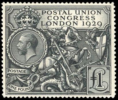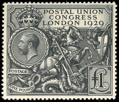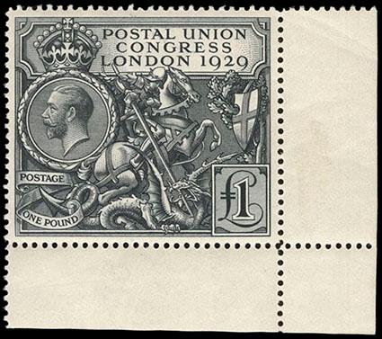 Great Britain, 1929, £1 P.U.C. O.g., very lightly hinged, wide margins and deep bold color, Very Fine. SG No. 438. Scott No. 209; $800. US$0 (Image)