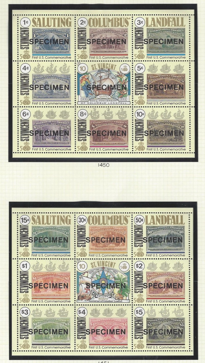 GRENADINES, "SPECIMEN" Issues, 1977-92 Period, 200 Stamps + 31 Souv. Sheets, All Diff., All Cmpt. Sets, All with "SPECIMEN" Overprint, Sound Cond., OG, MNH, F-VF (2.5 lbs.) (Image)