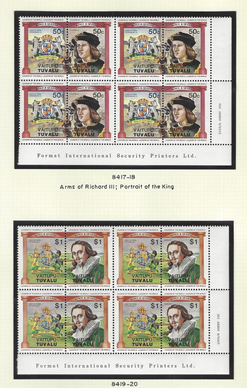 SEPARATE ISLANDS, 1984-87 Period, 409 Diff. Blks. (4 Stamps Each), All Cmpt. Sets, Includes Funafuti, #1-48, 52-55 & 62-63, Plus the Same Sets for Each of The Other Individual Islands, Plus a Few Misc. Items, Sound Cond., OG, MNH, VF (12.5 lbs.) (Image)