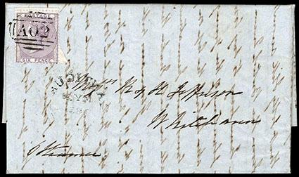 AN APPEALING GREAT BRITAIN 6D LILAC COVER USED FROM ANTIGUA. US$400-600 (Image)