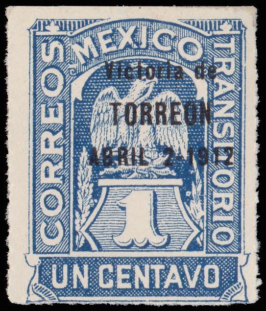 1914, "Victoria de Torreon" overprint, 1c deep blue, "1912" for "1914" (Scott 362a), o.g., lightly hinged, deep, rich color, Fine to Very Fine, signed Bloch. Scott $2,000. (Image)