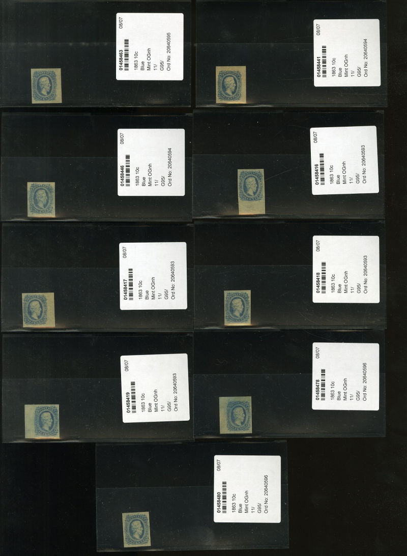 LARGE LOTS AND COLLECTIONS UNITED STATES 1861-1866 small balance, with unused 3c (65) single, pair and block of four, others used, with 24c lilac (nine copies), 15c black (3), etc. (Image)
