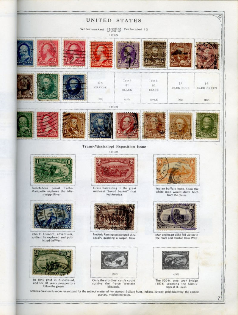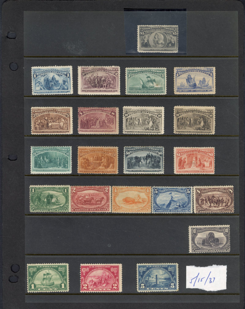 LARGE LOTS AND COLLECTIONS UNITED STATES 1847-1923 selection of better singles on auction or dealer's lot sheets, with four examples of no.1, Bank Note Issues, 1869 Pictorials, Columbians, Trans-Mississippi (four copies of $1 black), 1902 $2 dark blue (312), Plate No. Blocks, Washington-Franklins, Air Post, Confederate States, etc., mixed condition, faults noted, high catalogue value (Image)