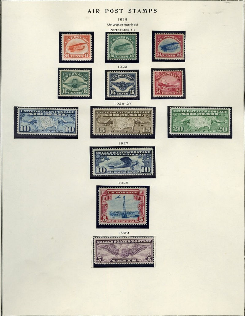LARGE LOTS AND COLLECTIONS UNITED STATES Air Post 1918-1950 collection of singles (C1-6,C18) and Plate Blocks (C7-10,C11 Double Top, C12-22), l.h. or n.h., fine-v.f. (Image)