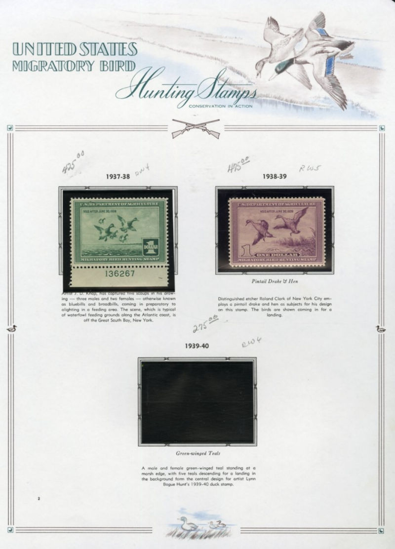 LARGE LOTS AND COLLECTIONS UNITED STATES Duck Hunting Permit Stamps 1937-2002 fairly complete collection on pages, mostly n.h. (some earlier stamps l.h.), also two plate blocks from the 1980s, fine-v.f. (Image)