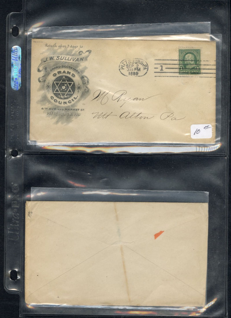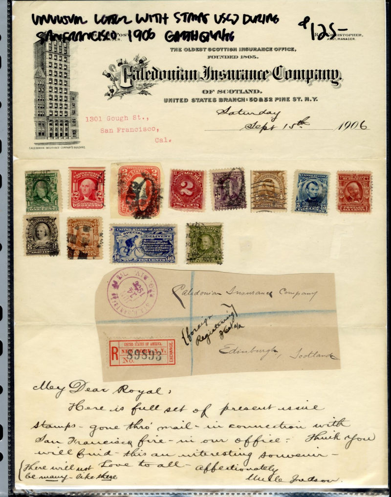 LARGE LOTS AND COLLECTIONS UNITED STATES - Covers and Postal History 1850-1960 Ephemera, selection of 25 items in album, with better items including 1851 letter to Illinois Postmaster General, 1906 San Francisco Earthquake Insurance letter, various items pertaining to the 1930 Sullivan Issue including model for the vignette and B.E.P. letters, 1924 American Philatelic Society stock certificate, 1895 B.L. Drew (Stamp Dealer) Price List, etc., mixed condition, fine-v.f. (Image)