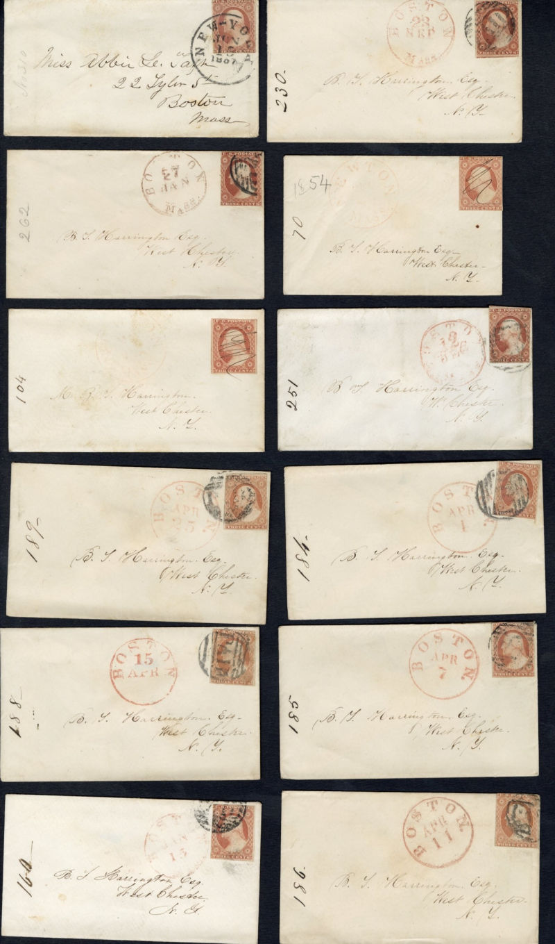 LARGE LOTS AND COLLECTIONS UNITED STATES - Covers and Postal History (11) 1851 group of 180 covers, mostly incoming correspondence to West Chester, N.Y., each franked with 3c imperforate, mostly from Boston, with red departure pmks, condition and pmks vary (Image)