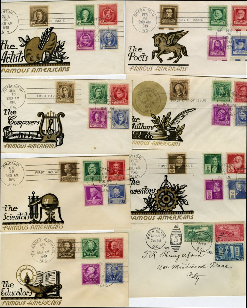 LARGE LOTS AND COLLECTIONS UNITED STATES - Covers and Postal History 1925-1952 miscellaneous items including various FDCs (13c Harrison, 10 unaddressed Washington FDCs, 1929 Aeronautics, complete set on 5c Air Mail entire, 20 Washington FDCs addressed to Nickles in San Juan, some cancel offsets, also Lexington-Concord, Washington Bicentennial, Famous Americans, National Parks, Farleys, plus others), 1933 Roosevelt Inauguration, March 4, three cacheted covers (two with printed cachets), one with "A Stamp Collector for President" label, fine, also Postal Stationery including 1932 3c entire, five FDCs, and 1952 Postal Cards, 2c on 1c green, surcharge inverted at lower left, two cards, one with light adhesion on reverse, plus Paid Postal Reply 2c on 1c unsevered with reply portion, surcharged at left in dark green, corner crease, also with 1881 1c black postal card, and much more (Image)