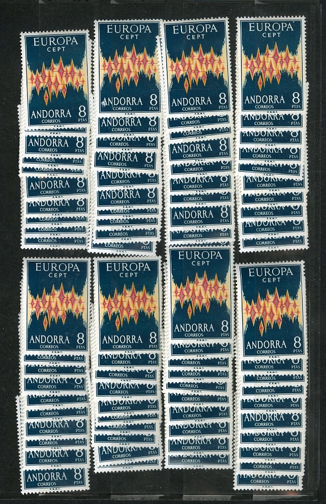 LARGE LOTS AND COLLECTIONS ANDORRA (Spanish) (62) 1972 Europa, 100 copies, n.h., v.f., cat. value $4500 (Image)