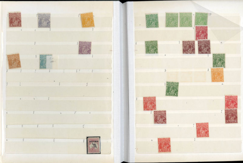 LARGE LOTS AND COLLECTIONS AUSTRALIA 1913-70 balance of a collection in stock book, some early Commemoratives, Regular Issues, Navigators to ?2, Decimal sets, also Norfolk Island, mostly unused, many n.h., fine-v.f., owner's cat. $1,800 (Image)