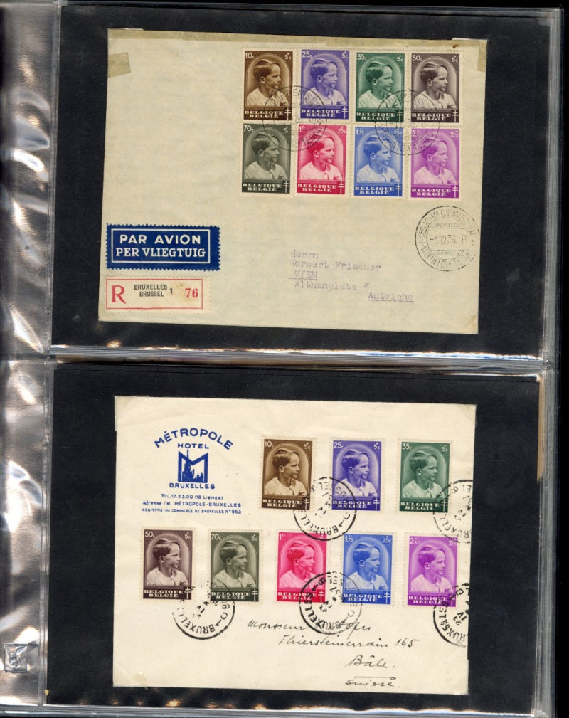 LARGE LOTS AND COLLECTIONS BELGIUM 1936-50 collection of 85+ covers and cards, many franked with complete sets of Semi-Postal issues, various pmks, combinations, slogan cachets, large poster sheetlets, etc., fine-v.f. (Image)