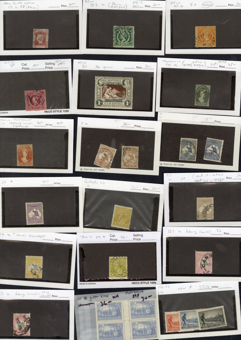 LARGE LOTS AND COLLECTIONS AUSTRALIAN STATES 1855-1910 large accumulation of hundreds, mostly used perf. and imperf. singles on black Vario cards, New South Wales, Western Australia, Tasmania, Victoria, etc., somewhat disorganized, mixed condition, some reference material, high catalogue value (Image)