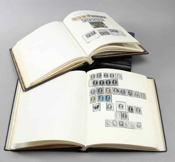 Classic American Philately Auction Catalog Clippings from many years ago, 4 springback binders compiled by a German collector, first contains postmasters' provisionals to 1857 issues, second is 1861 to 1898 issues including fancy cancels, plus inverted centers (1869 & Pan American & C3a), and a few Washington Franklins and Graf Zeppelins, third is back of book including CL1, flown covers, some officials including specimens, few newspapers and revenues, strong locals on and off cover, some civil war patriotics, steam/steamship and other postal markings, and fourth is Confederate States including provisionals, both on and off cover, some of the items have prices but sadly no dates, but with a little work, you can get a good idea, Very Fine and unique, fully imaged online. Shipping charges apply - weight 17.8 lbs. (Video for this lot) (Video2 for this lot) (Video3 for this lot) (Video4 for this lot) (Image)