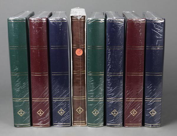 Lighthouse stockbooks, Seven new (still in wrapper) 32 page Lighthouse stockbooks in various colors (2 burgundy, 2 green, and 3 blue). Shipping charges apply - weight 31.8 lbs. (Image)