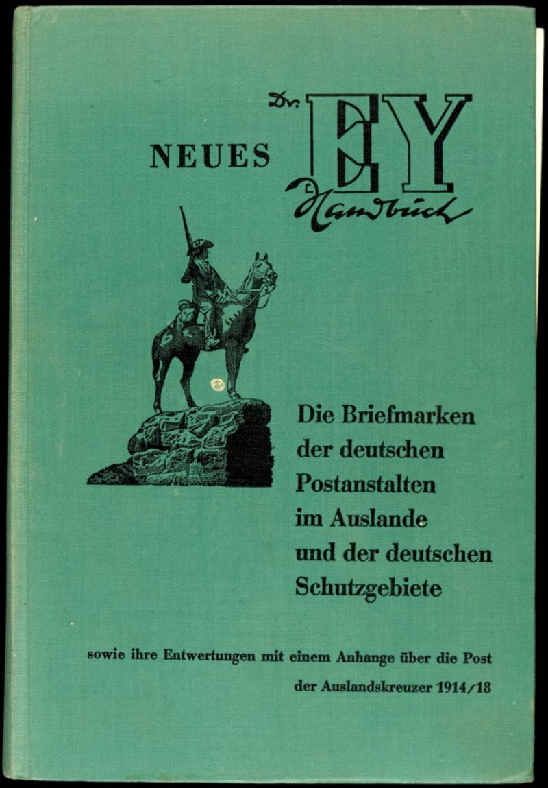 Dr. Ey handbook \the postage stamps of the German postal service institutes in the foreign country and of the German protectorate as well her cancellations\, 3. edition from 1964, 235 sides Dr. Ey-Handbuch \Die Briefmarken der deutschen Postanstalten im Auslande und der deutschen Schutzgebiete sowie ihre Entwertungen\, 3. Auflage von 1964, 235 Seiten (Image)