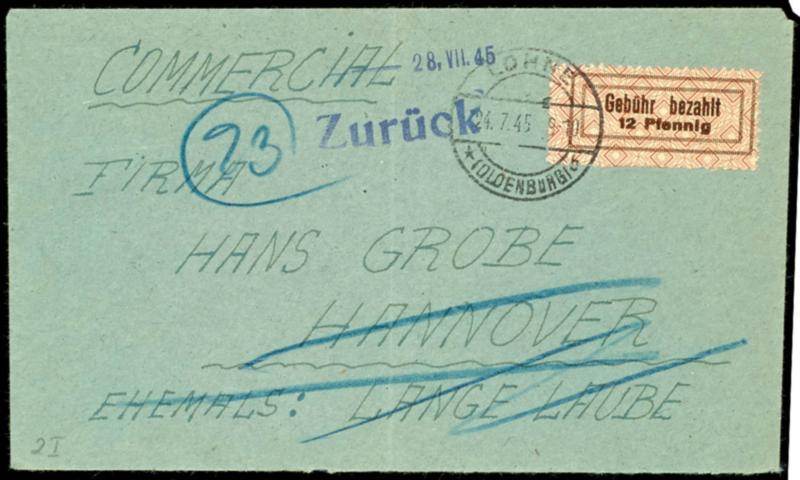 12 Pf. On as a single franking to Hanover, there with "return" cancel and date cancel provided thus the proof for the scarce commercially use furnished is. Envelope centered outside of the franking folded and reverse besides the senders note still a few notes. (2I)