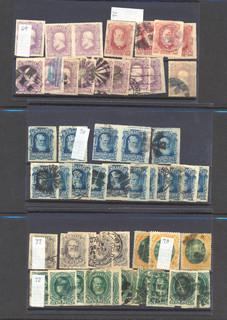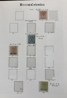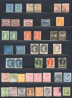 Accumulation of Nova Scotia, New Brunswick and P.E.I., 1860s to 1872, with about 100 stamps on several Lindner album pages and in glassines. Mostly mint hinged, but with some never hinged also, unchecked by us for varieties and papers. Also includes a set of ten of the PEI reprinted die proofs on card and one faulty BC #2. Overall fine to very fine. (Image)