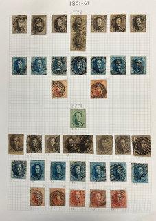 1849/1970s, extensive mint & used collection of Belgium, in three binders, neatly-hinged on pages and identified per Michel, predominantly used for the nineteenth and early twentieth centuries, beginning with the 1849 "Epaulettes" issues, including shades of the 20c, single 40c carmine rose (small imperfections), good range of the later 1851/61 imperforates, collected with an eye to shade variations, as were the later perforated issues, Coat of Arms, etc, note a few difficult mint examples including an original gum 1915 5fr deep blue (Sc. #121, $275) and a fresh lightly hinged 4fr Antwerp Exhibition single from the souvenir sheet (Sc. #221a, $100), the 1929 Arms and later 1930s/40s King Leopold III definitives include several dozen mint examples with attached advertising labels, noting also tete-beche pairs, much mint from the 1950s to 1970s, with singles and sets as well as souvenir sheets, the third album with semi-postals and Air Post, including many souvenir sheets, with complete sets including the 1910 St. Martin of Tours (used), 1911 Charleroi overprints (mixed mint/unused), 1928 Orval Abbey (mint), and much more, the third album with back of the book including Officials, the popular Railway stamps, military stamps, parcel post, postage duties, newspaper stamps, as well as issues of Eupen & Melmedy and the Belgian Congo, some manila pages of collector's duplicates included, faults to be expected among the classic and semi-classic issues in particular, but a useful collection, with much being fine. (Video 1)(Video 2)(Video 3)(Image)