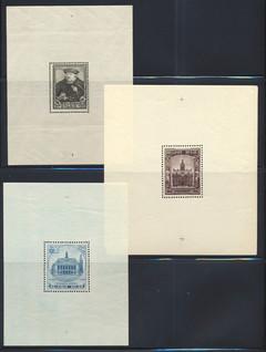Group of stamps and souvenir sheets, 1935 to 1939, on a double-sided black stock sheet including Scott B156–162 (hinged, c.v. $178), B169 (creases and a thin, c.v. as nh $600), B178 (never hinged with clipped corner, c.v. $275), B179 (nh, c.v. $175), and B256–263 (hinged, c.v. $65), overall fine to very fine. (Image)