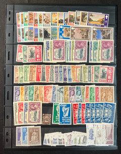 Advanced collection of mint and used, 1850s to 1970s, comprising many hundreds of stamps housed in a Lighthouse hingeless album and two stockbooks, the album quite complete for the period with back-of-the-book issues including Officials, Postage Due and Air Post, most early stamps appear to be reprints though still attractive and worthy of study, the two stockbooks contain owner-identified singles, tabs and blocks mostly from the 1960s and 1970s, a slight tobacco smell noted for accuracy, a collection clearly assembled over many years and overall fine or better. (Image)