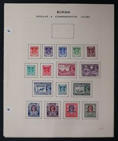 Burma, 1945–1965, mostly mint collection with over 170 stamps hinged on album pages, with regular issues predominantly mint and Officials a mix of mint and used, including better such as Sc. #70–84, 102–115, and 176–187, overall fine–very fine. (Image)